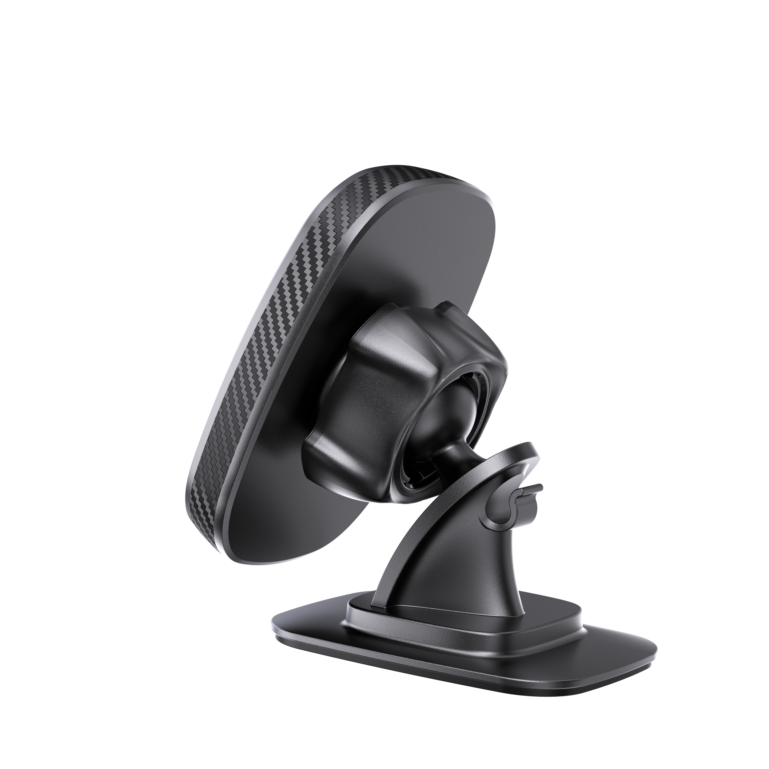 גוף המעמד עשוי מתכת חזקה עם גימור Carbon Fiber Black, וטבעת כתומה דקה המעניקה לו מראה טכנולוגי ומוקפד. העיצוב הקומפקטי שלו מאפשר הצמדה נקייה ונראית מצוין בכל רכב, מבלי להסתיר את שדה הראייה או לפגוע בעיצוב הפנים.